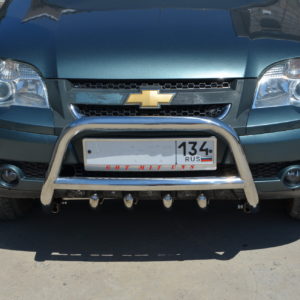 Защита переднего бампера скоба высокая+акула Chevrolet Niva 2010-н.в.
