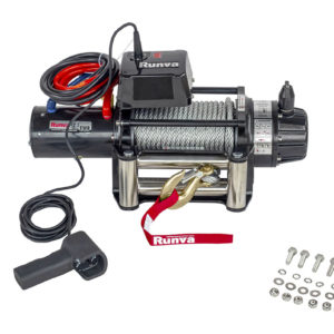 Лебёдка автомобильная электрическая 12V Runva 12500 lbs 5670 кг влагозащищенная, стальной трос