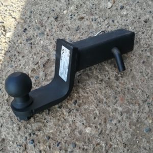Переходник фаркопа в квадрат 50×50 с занижением 120 мм. (шар черный 50мм.)
